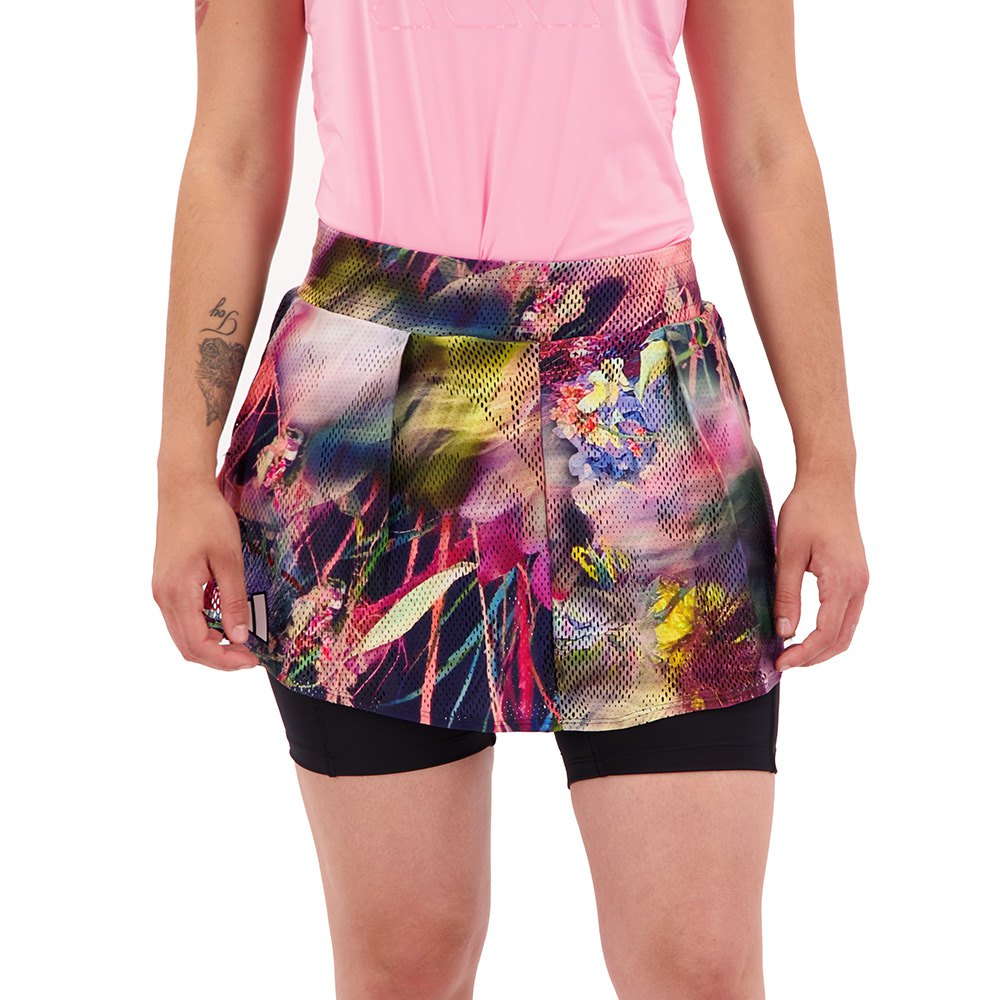 La falda Adidas Mel Skirt te brinda toda la libertad de movimiento en el tren inferior para que puedas correr, saltar y desplazarte naturalmente por la pista durante los entrenamientos o en los partidos de tenis de la temporada y además con una sensación de frescura inigualable.Esta falda tenis está confeccionada con poliéster Jacquard que es uno de los más resistentes a las abrasiones, transpirable y de rápido secado, mientras que las mallas internas cuentan con poliéster reciclado y elastano para una mayor elasticidad. La tecnología Aeroready hace que esta falda corta sea muy transpirable, gracias a su capacidad de absorción de la humedad. Incluye una cintura elástica de talle alto, aberturas laterales en el bajo, mallas internas con bolsillos para las pelotas y entrepierna reforzada. Como parte de una colección de adidas que muestra un nuevo enfoque para el reciclaje de carbono, esta falda ajustada fue creada para el evento de tenis más grande del hemisferio sur.Con un llamativo gráfico inspirado en los filtros de CO2 naturales de nuestro planeta, te mantendrá cómodo a toda velocidad gracias a su construcción elástica y AEROREADY que absorbe la humedad.Los bolsillos de malla en las mallas cortas interiores son perfectos para guardar balones sin usar.Fabricado con una serie de materiales reciclados y al menos un 70 % de contenido reciclado, este producto representa solo una de nuestras soluciones para ayudar a acabar con los residuos plásticos.CARACTERÍSTICAS:- Corte ajustado con tiro alto.-Cintura elástica.-Falda:100% poliéster jacquard.-Medias interiores: 85 % poliéster reciclado, 15 % elastano interlock.-AEROREADY que absorbe la humedad.-Medias interiores:Bolsillos de malla para pelotas en los costados.-FABRICADO EN PARTE CON MATERIALES RECICLADOS.