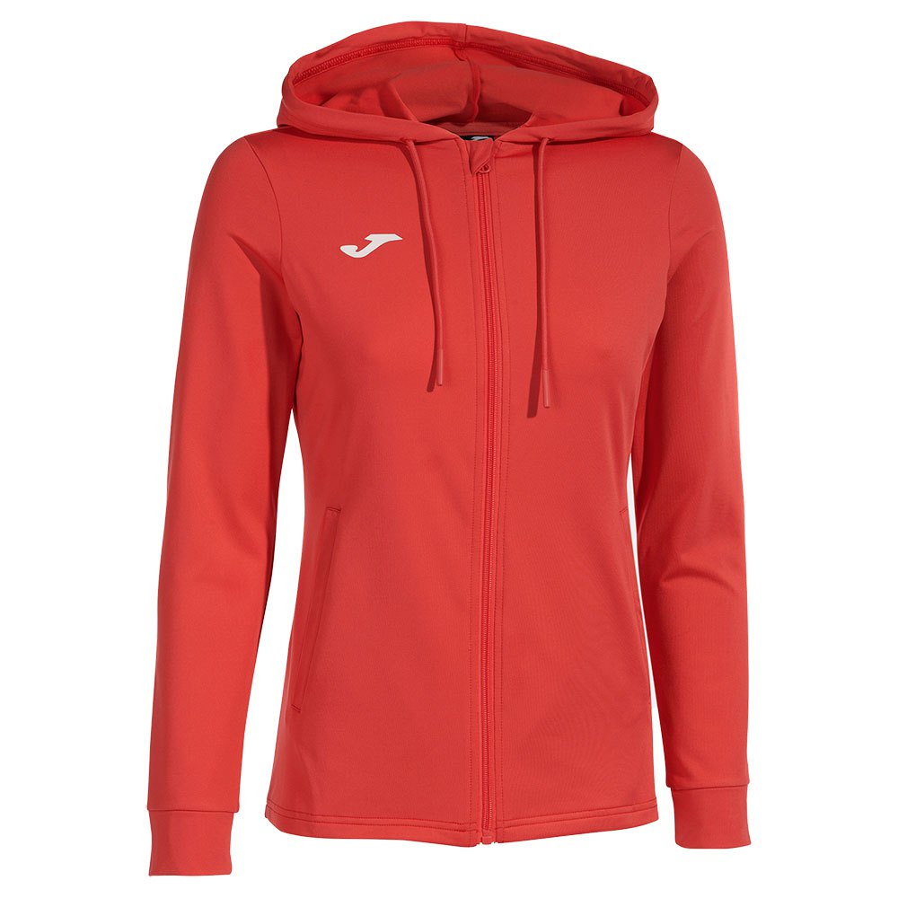 Sudadera Con Cremallera Para Mujer/Niña, Diseñada Para Entrenamiento Y Competición. Modelo de tenis y pádel cómodo, suave y cálido. Todo lo que necesitas para facilitar tu progreso en el campo, incluso después del entrenamiento. Esta chaqueta abierta tiene un cierre de cremallera completo protegido por una solapa de tela base. Además, Incorpora Capucha Ajustable Mediante Cordones, Puños Elásticos Para Un Mejor Aislamiento Del Frío Y Dos Bolsillos Frontales Con Ribete. En ellos, el tenista puede guardar cómodamente pequeños objetos personales, como llaves o el móvil. Está Confeccionado Con Tela Cómoda Y Cálida. El Forro Polar Interior Protege Del Frío Y Brinda Resistencia Térmica Cuando Bajan Las Temperaturas. Por otro lado, es elástica, se adapta a la forma física del tenista y permite total libertad de movimientos. Se Caracteriza Por Un Diseño Monocromo Básico, Fácilmente Combinable Con Otras Prendas. Esta Chaqueta También Lleva El Logo De Joma Serigrafiado En La Parte Delantera.